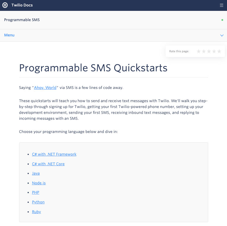 Andrew Baker reads the docs. As Director of Developer Education at Twilio, it’s Andrew’s job to make sure developers are well-equipped to build whatever they have in mind with Twilio’s APIs. That means keeping an eagle-eye view on the state of the docs as a whole, and a narrow focus on how individual pieces of content are performing. To do just that, Andrew uses equal parts developer empathy, documentation automation, and communication with the developer community he serves. He was kind enough to take a moment to speak with me about how the Developer Education team came together and how they scaled the quality and quantity of Twilio’s docs.
